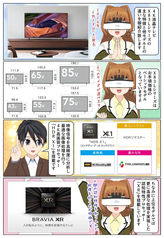 搭載しているのが X83Lシリーズとの違いの一つとなっています。