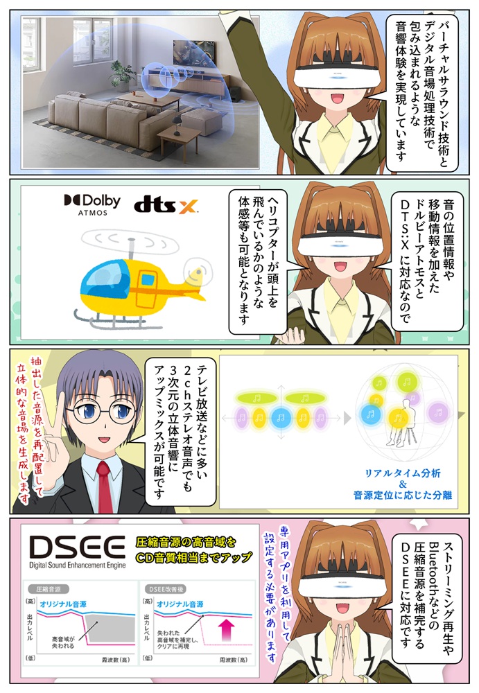 3次元の立体音響にアップミックスする機能も搭載となっています。