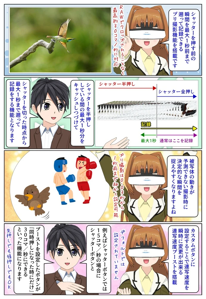 - プリ撮影機能 & 連写速度ブースト機能