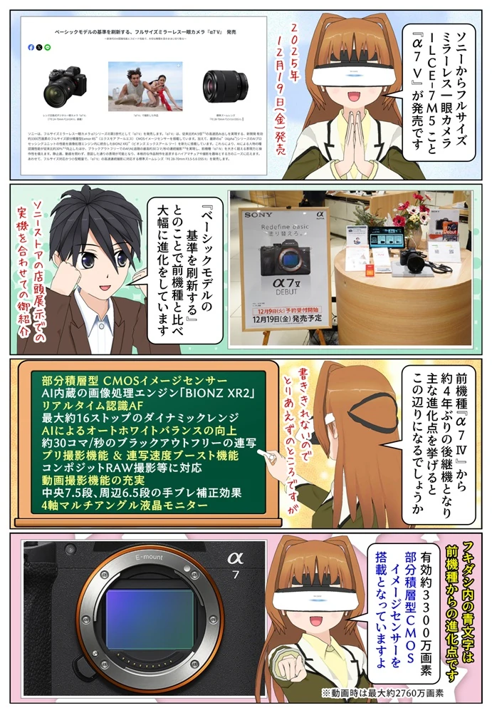 ベーシックモデル『α7 V』ILCE-7M5 が発売となりました。