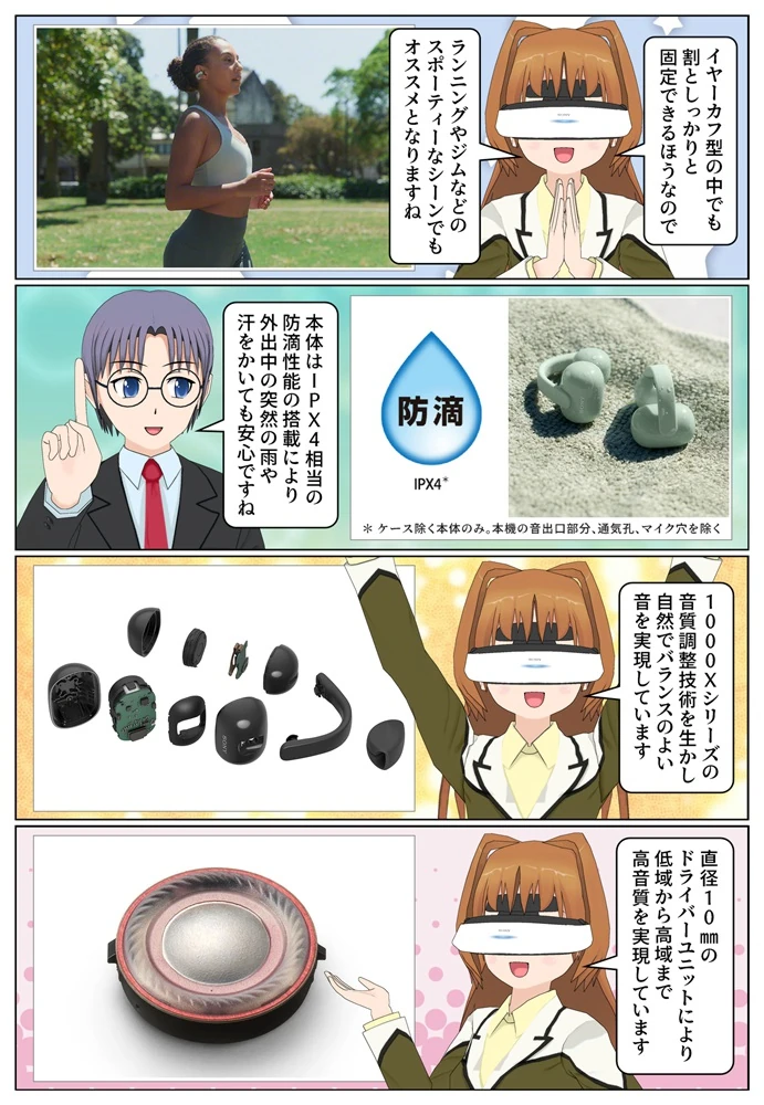 耳の穴を塞がないのが大きな特徴で装着感も快適となっています。