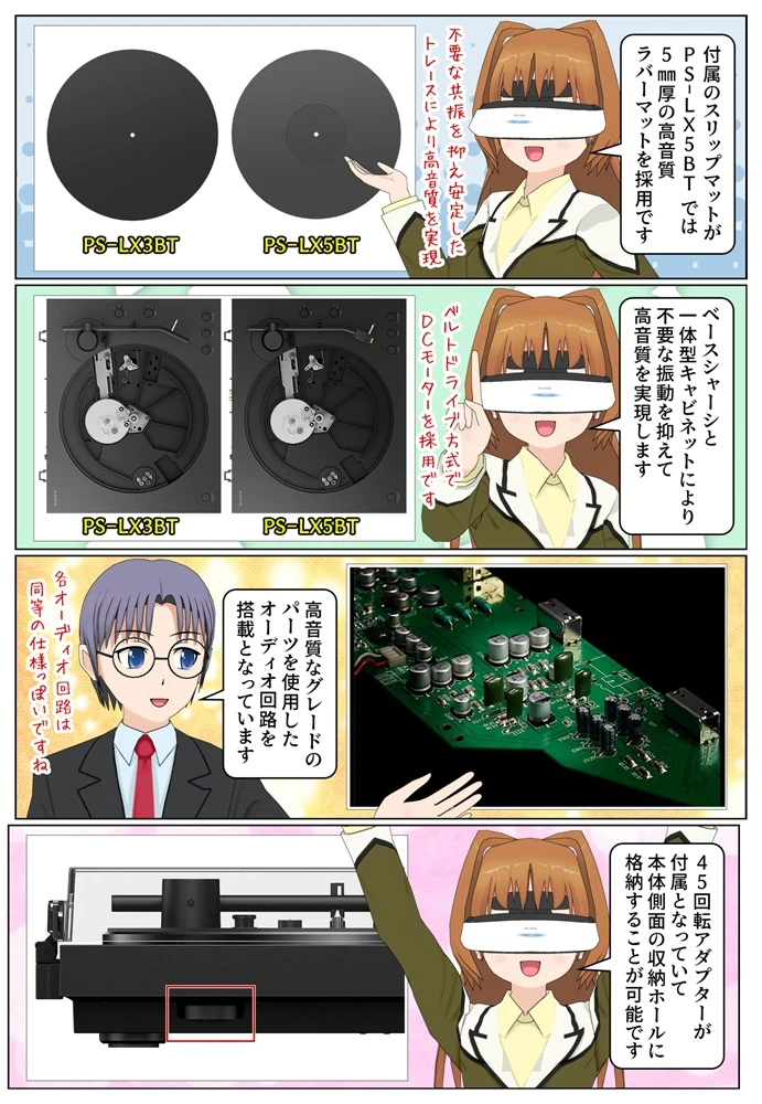 ソニーのステレオレコードプレーヤー「PS-LX5BT」と「PS-LX3BT」の特徴や違い