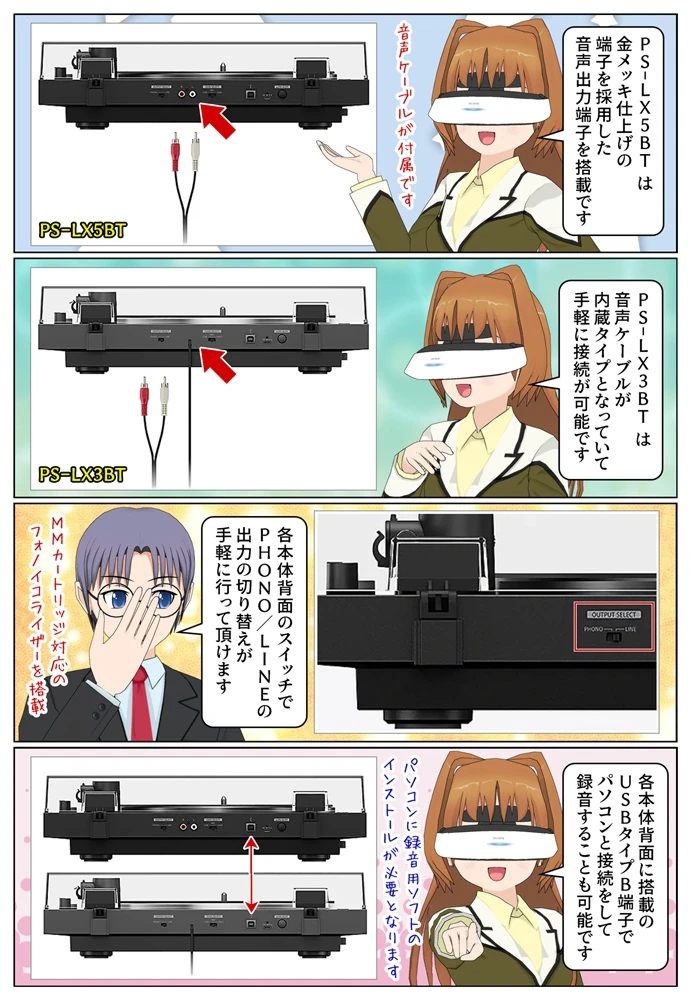 「PS-LX5BT」と「PS-LX3BT」はMMカートリッジ対応の