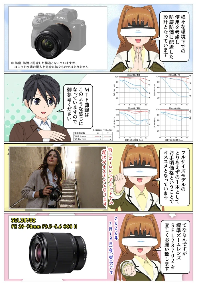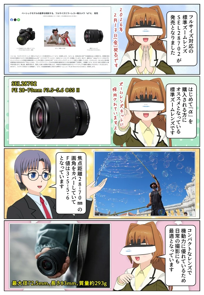 フルサイズ対応かつ小型軽量で、『α7 V』の高速連続撮影に対応する標準ズームレンズ『FE 28-70mm F3.5-5.6 OSS II』を発売します。